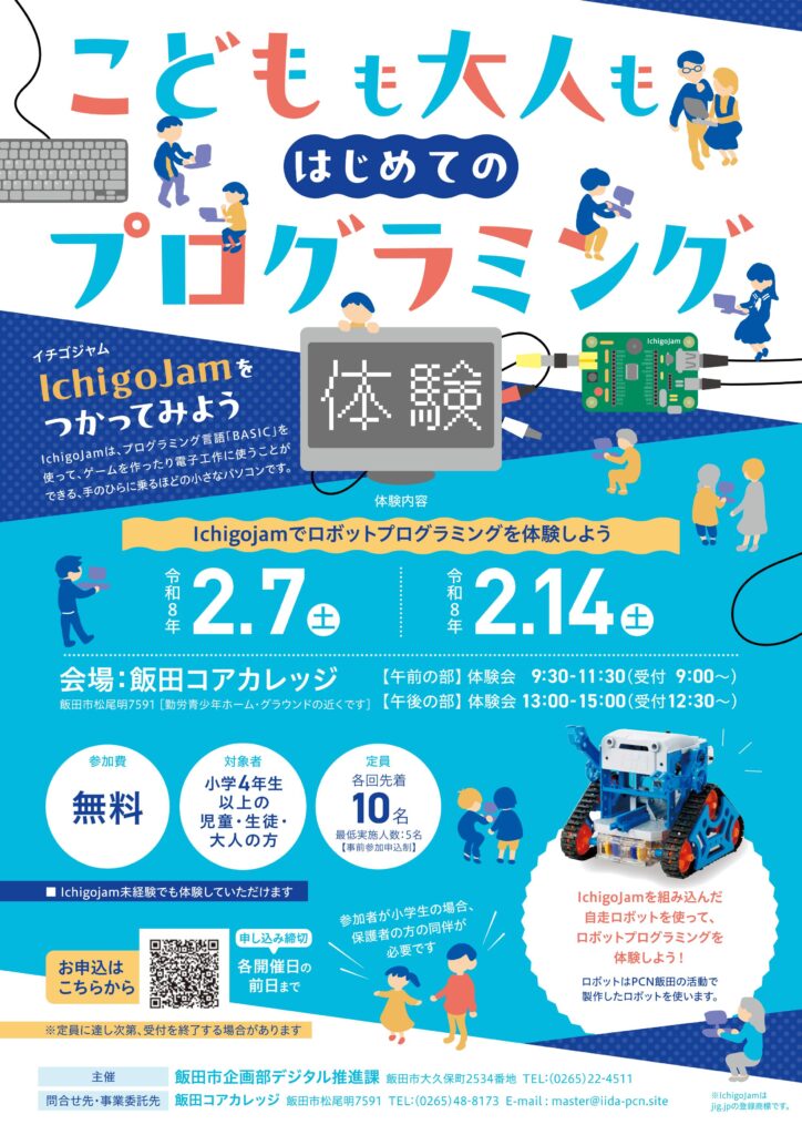 興味のある方は、はじめてのプログラミング体験 2025年度冬編 からお申込みください。