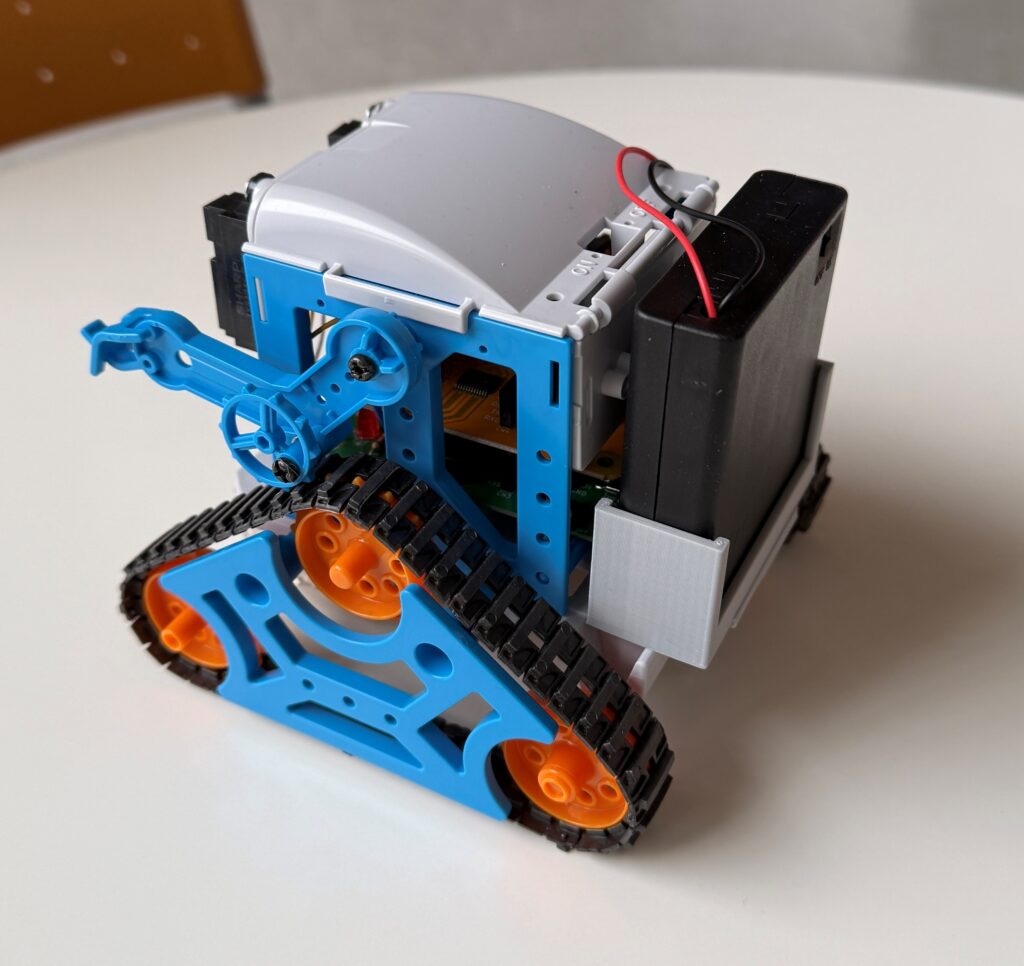 元々はタミヤ模型さんの「CAM PROGRAM ROBOT」という製品で、あらかじめプログラムバーに所定のカムをセットすると、片側のキャタピラが浮いて方向転換するという動きをします。