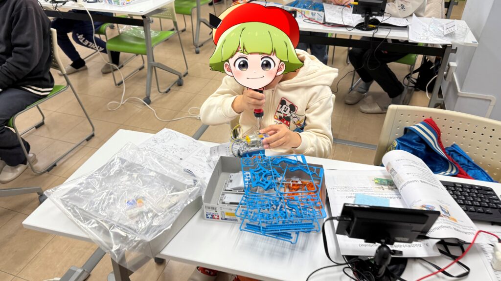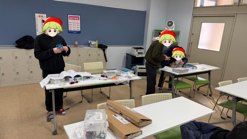 2025年度第3回ワークショップとして、今後ロボットプログラミングで利用する、IchigoROBOTを組み立ててもらいました。
